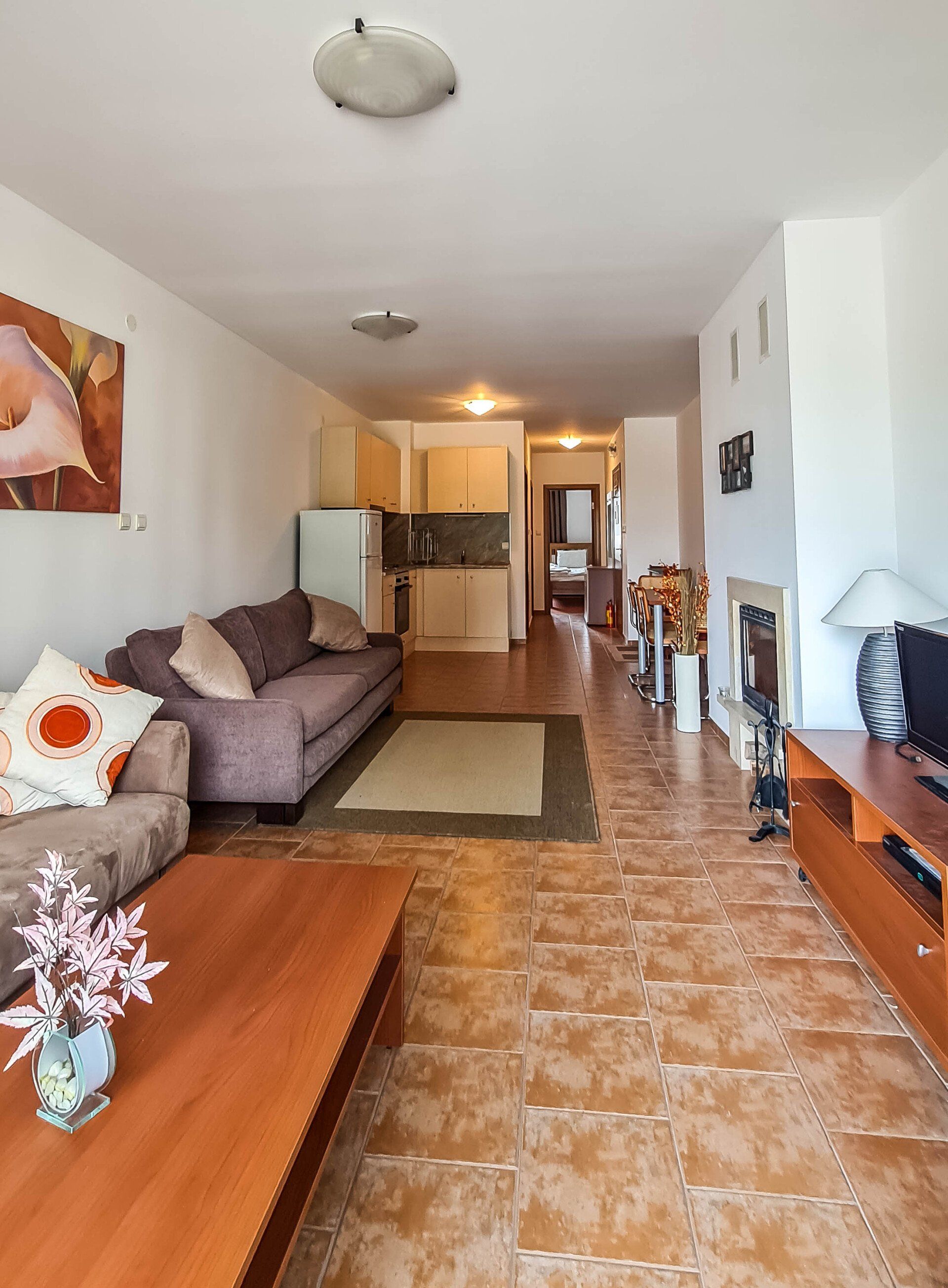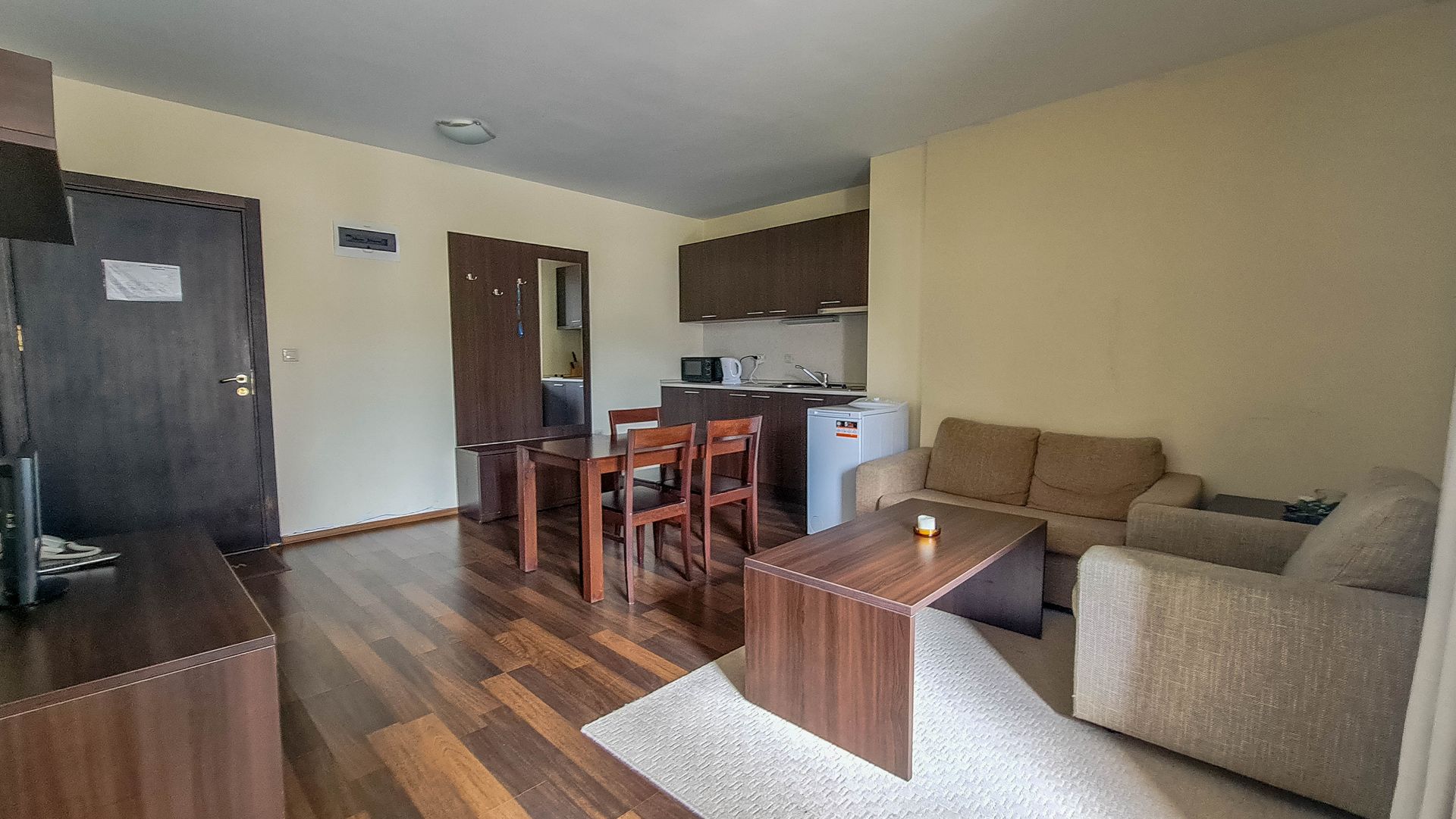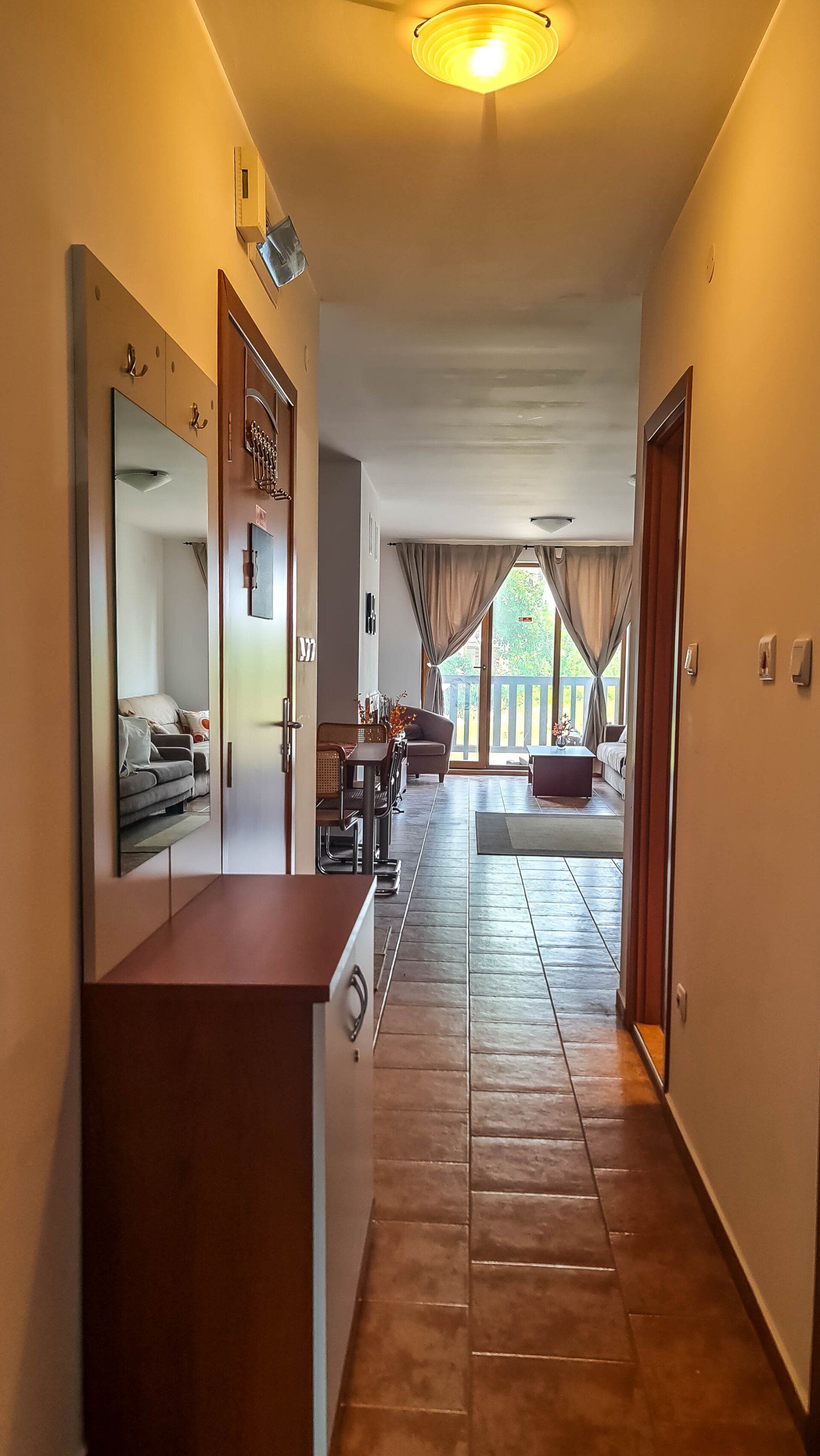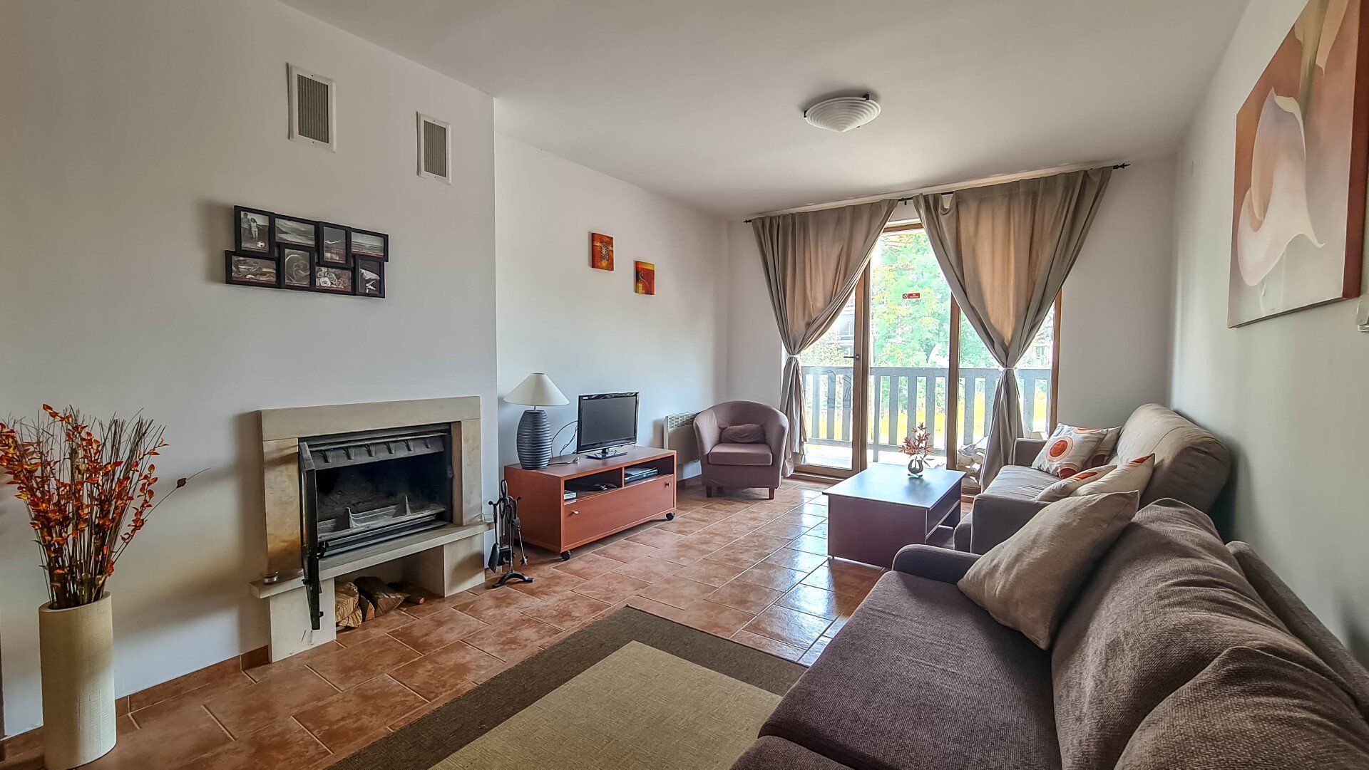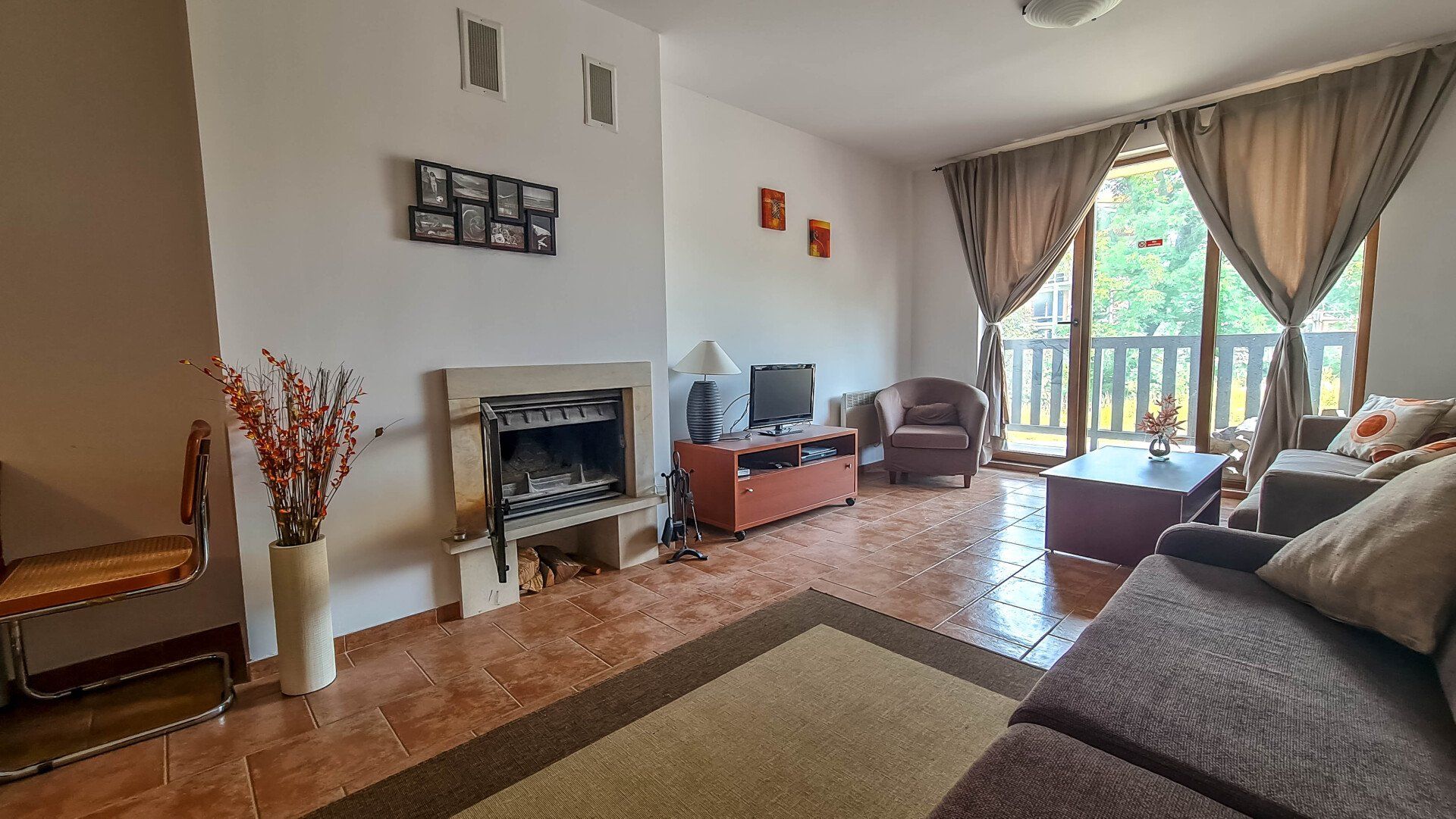 The apartment has a cozy bedroom for 3 people, beautiful balcony with mountain views, a storage room with a washing machine and a water heater.