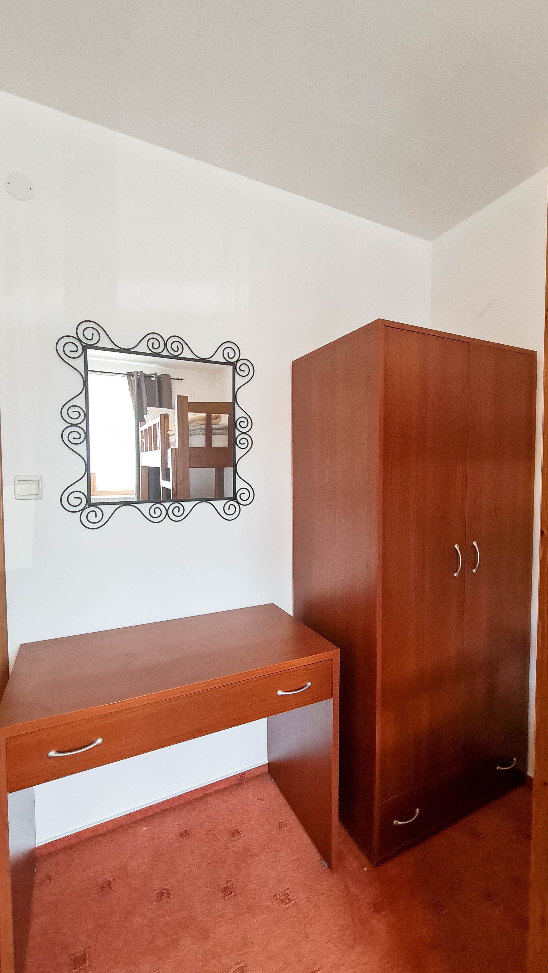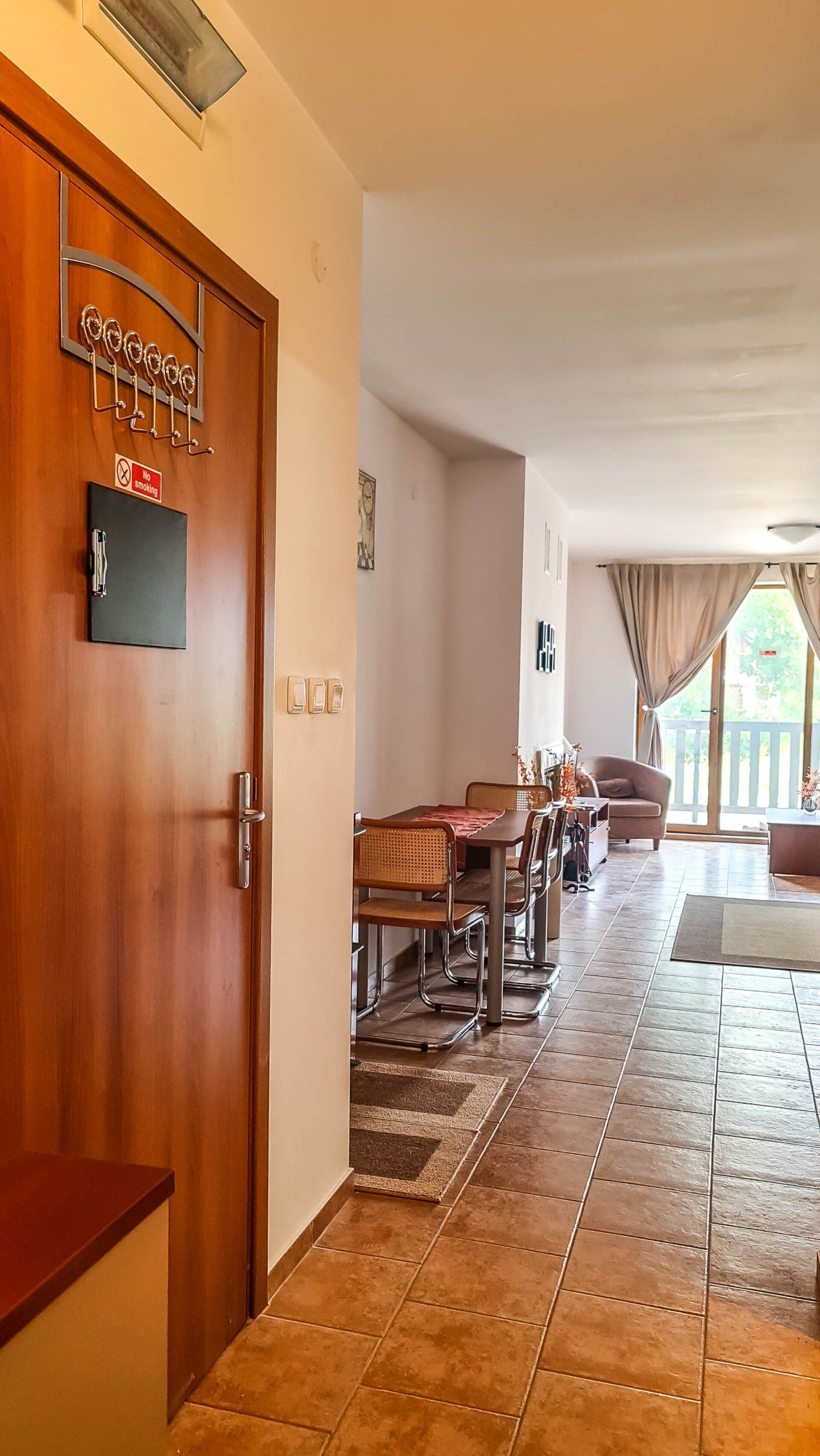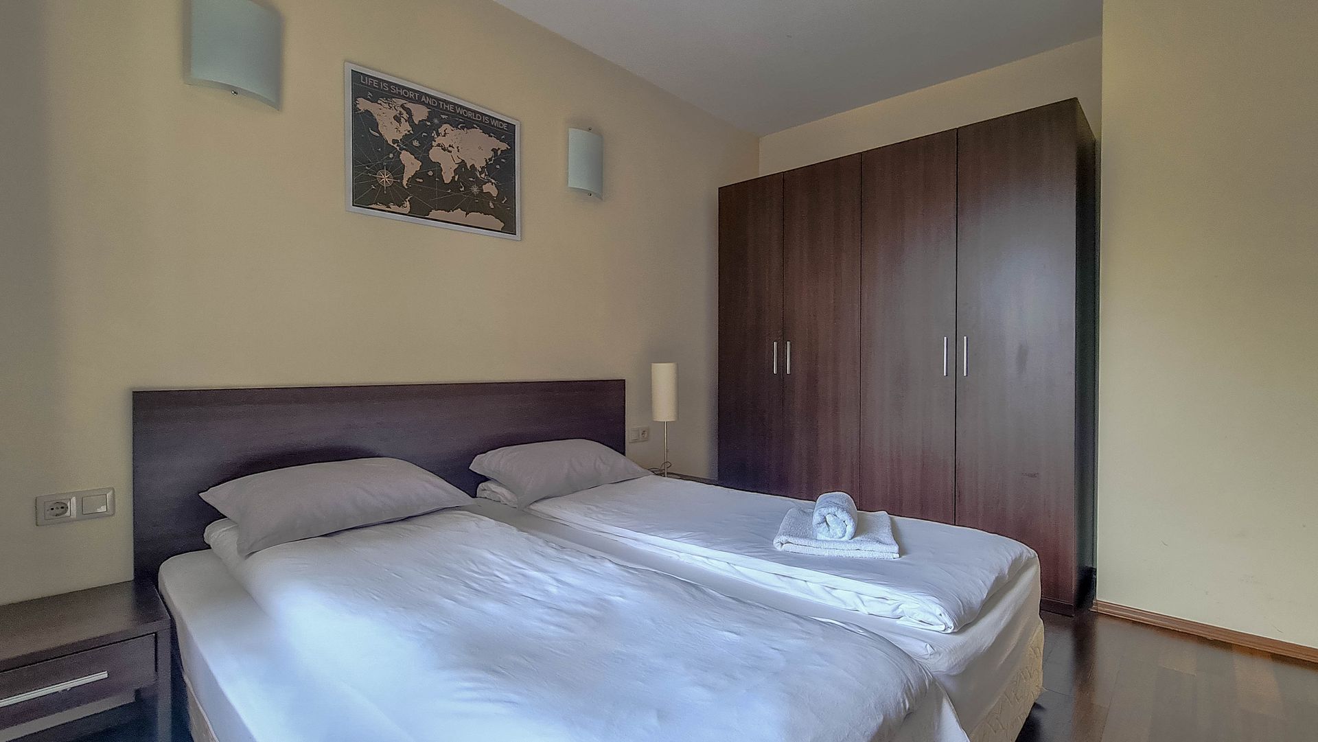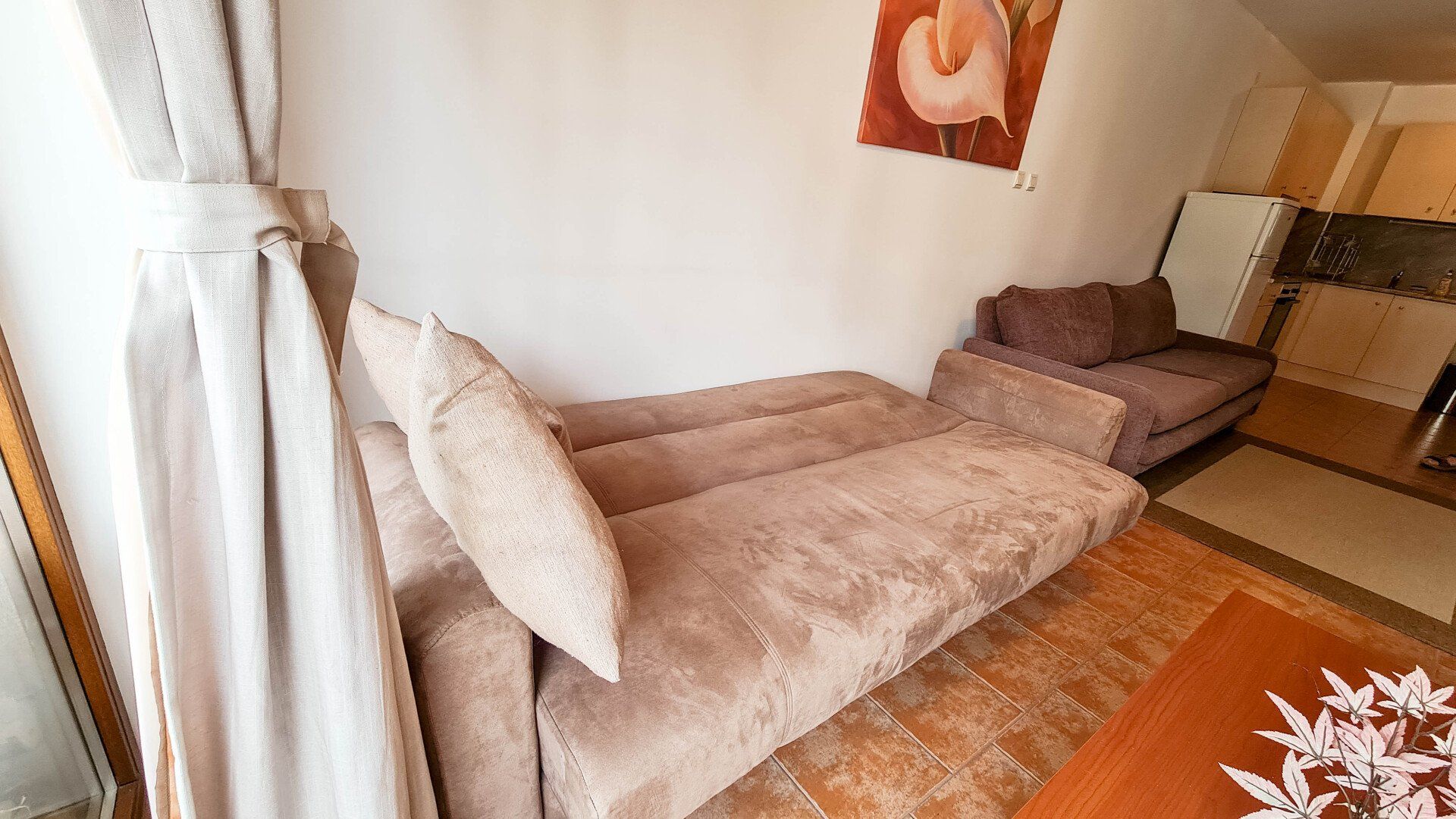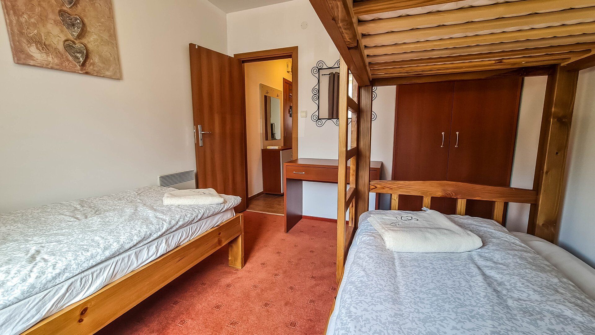 The apartment has a cozy bedroom for 3 people, beautiful balcony with mountain views, a storage room with a washing machine and a water heater.