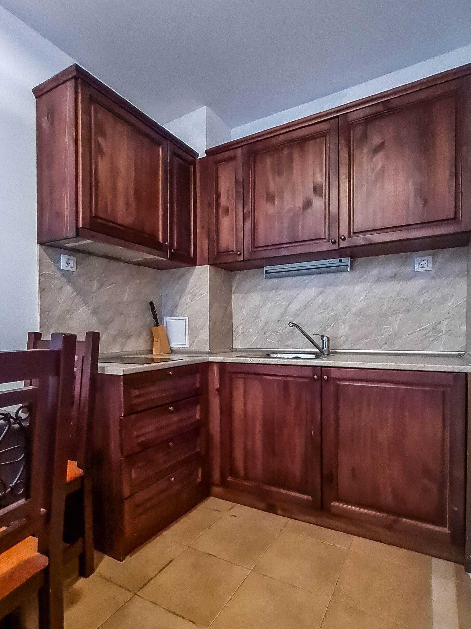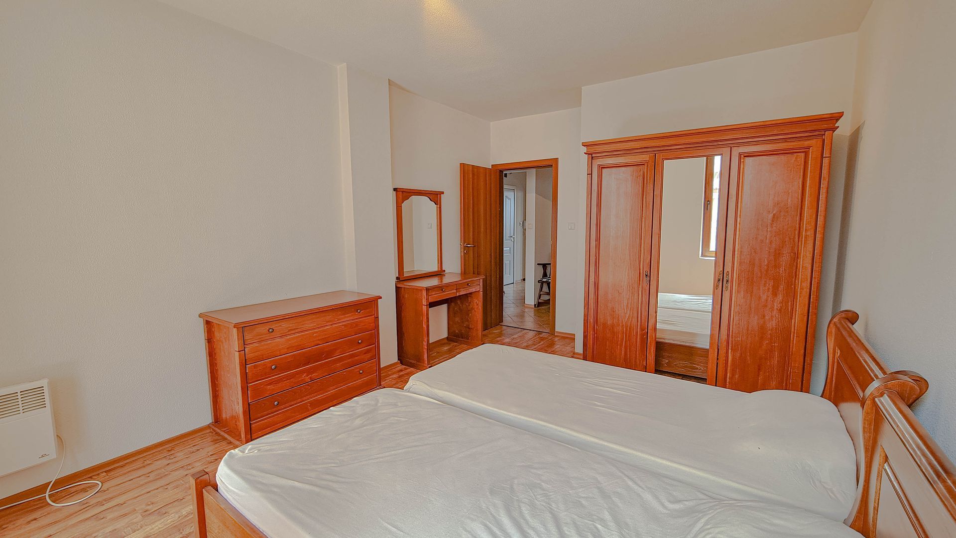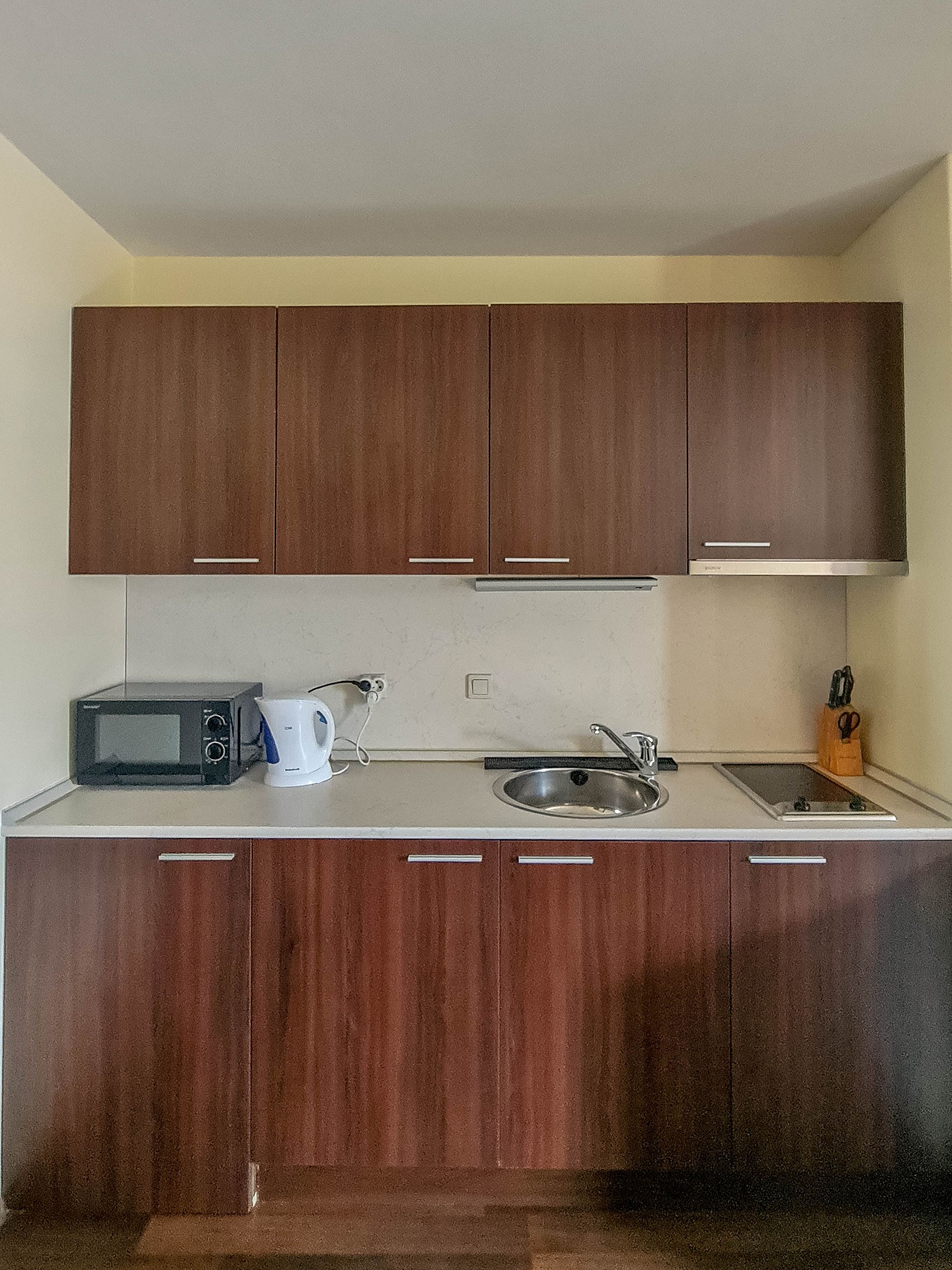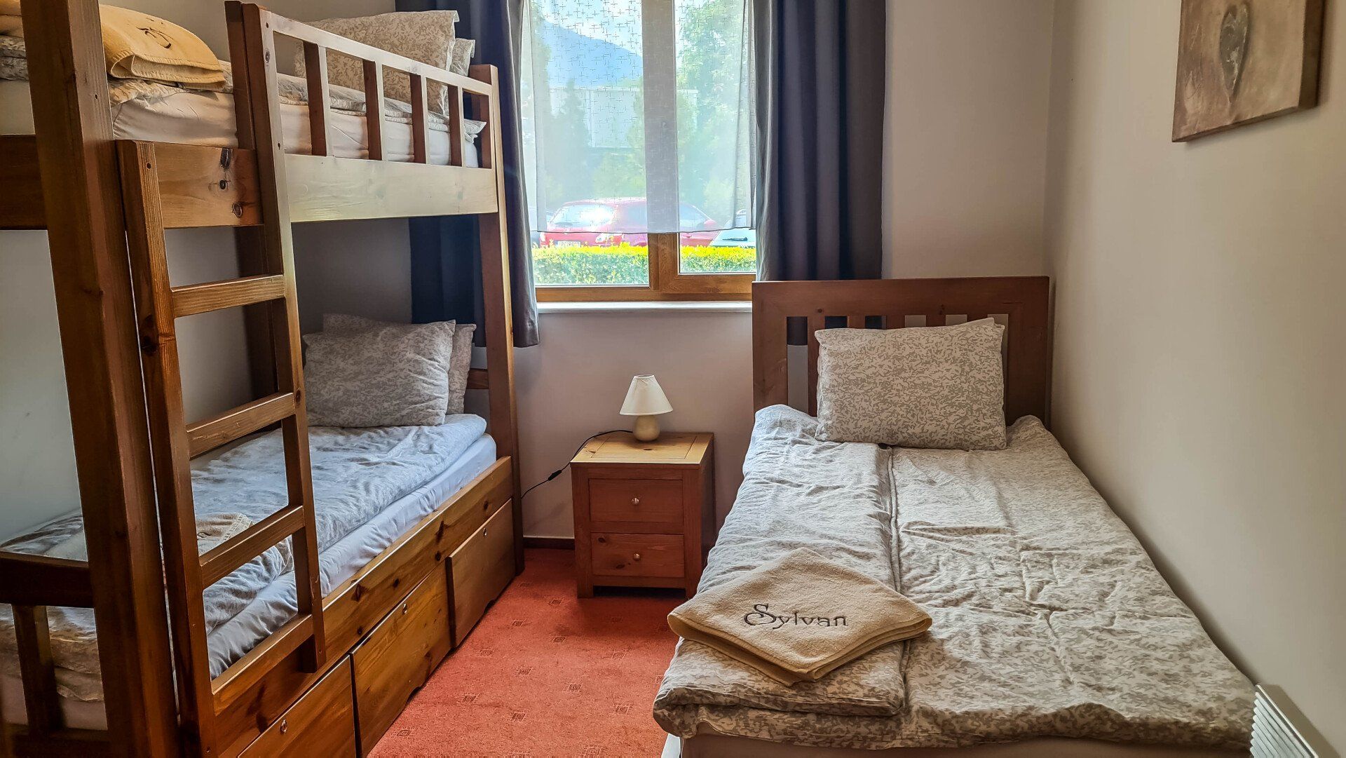 The apartment has a cozy bedroom for 3 people, beautiful balcony with mountain views, a storage room with a washing machine and a water heater.