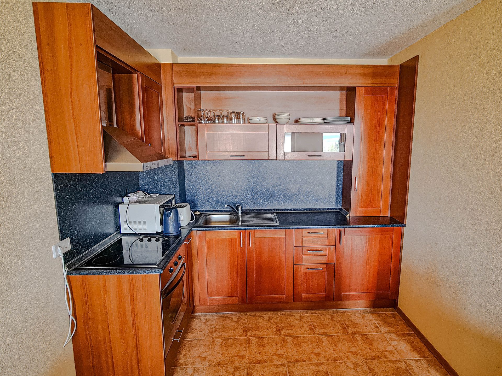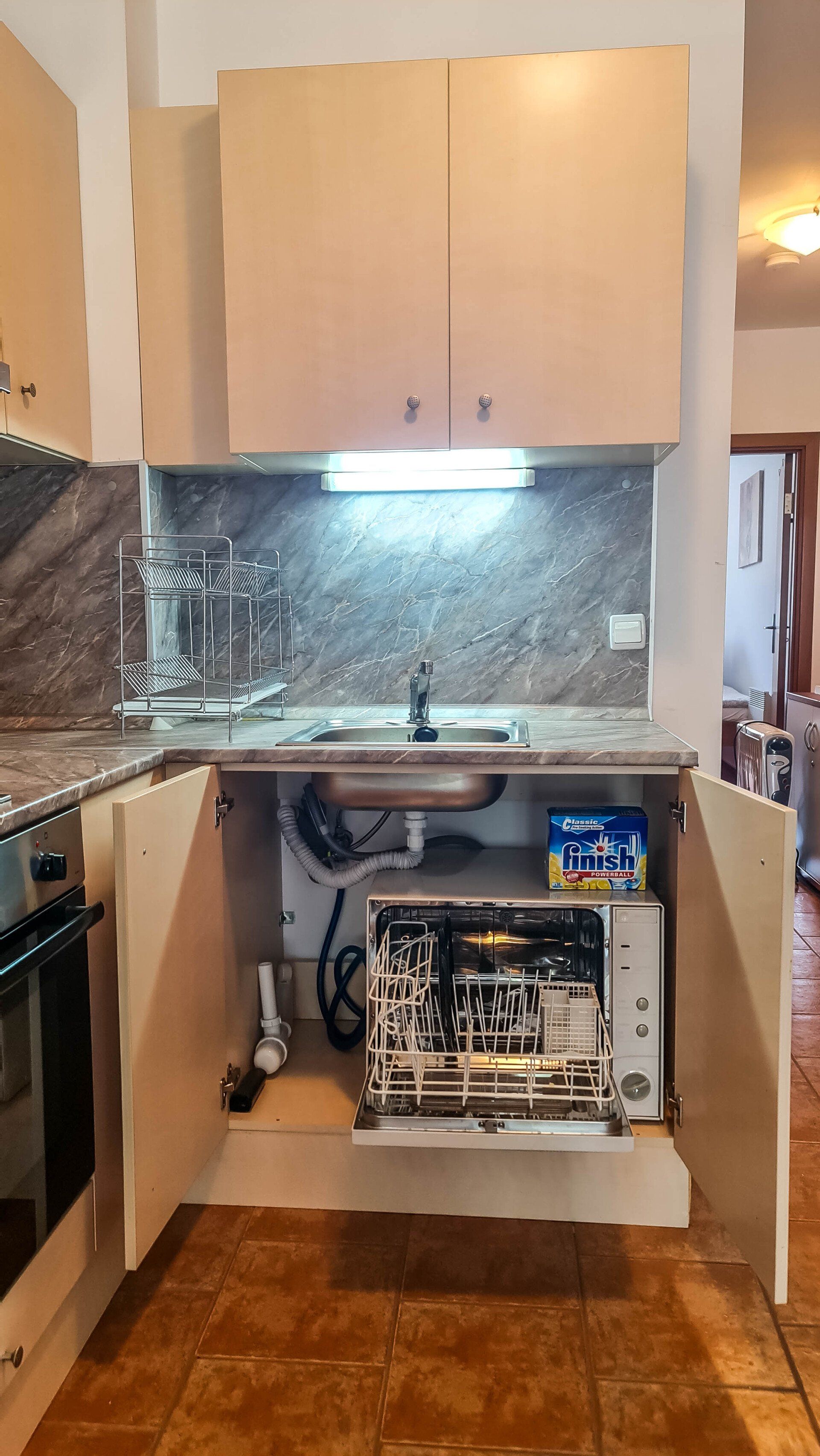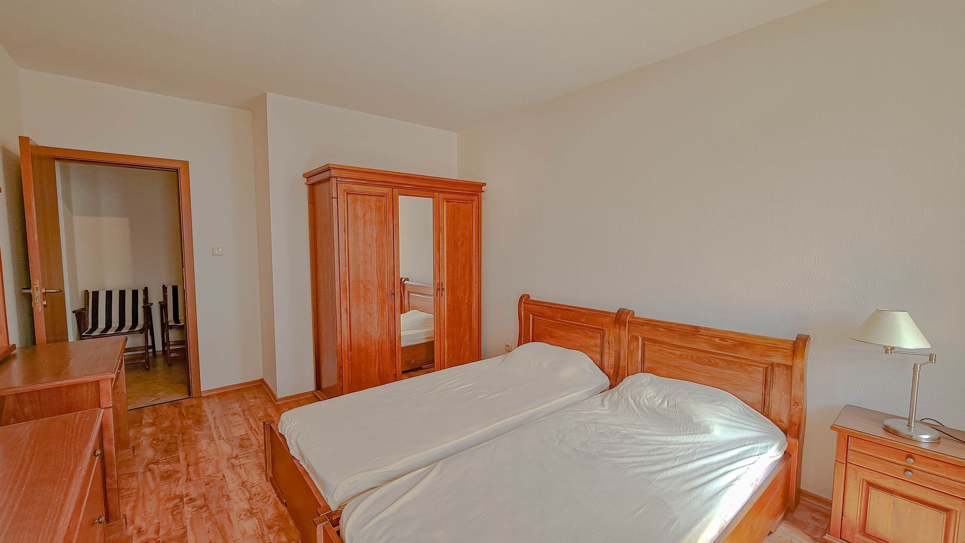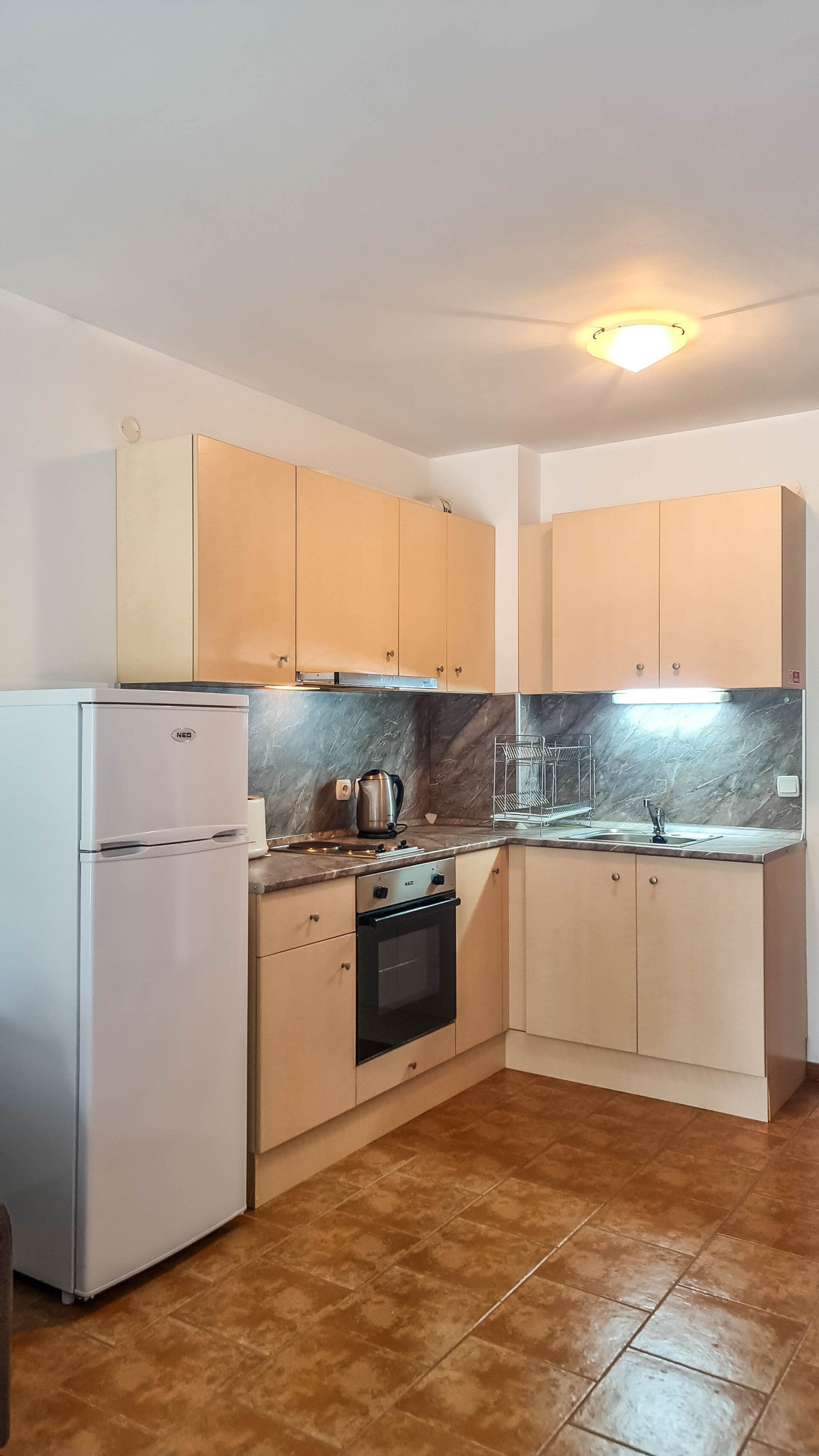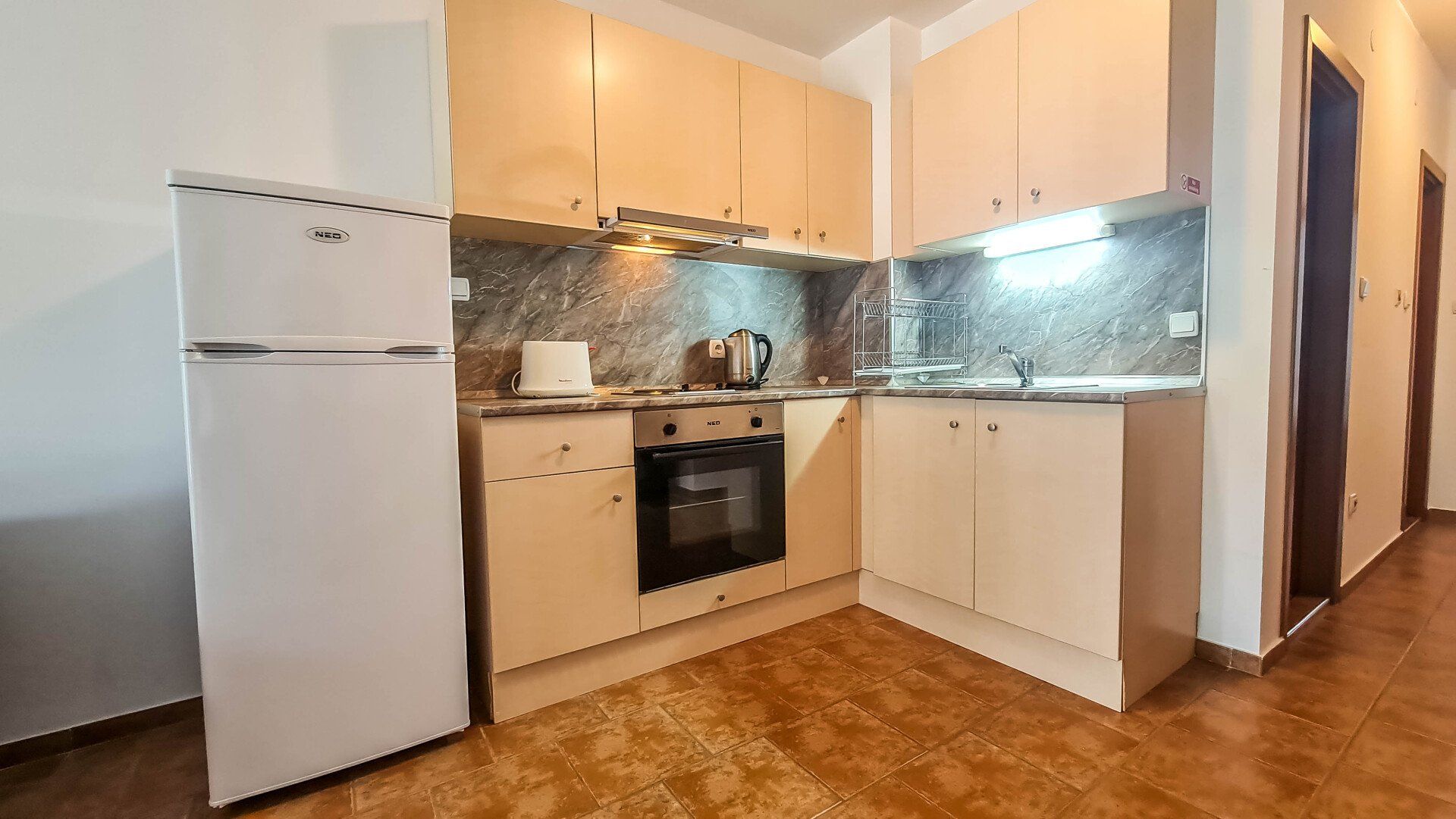 The apartment has a cozy bedroom for 3 people, beautiful balcony with mountain views, a storage room with a washing machine and a water heater.