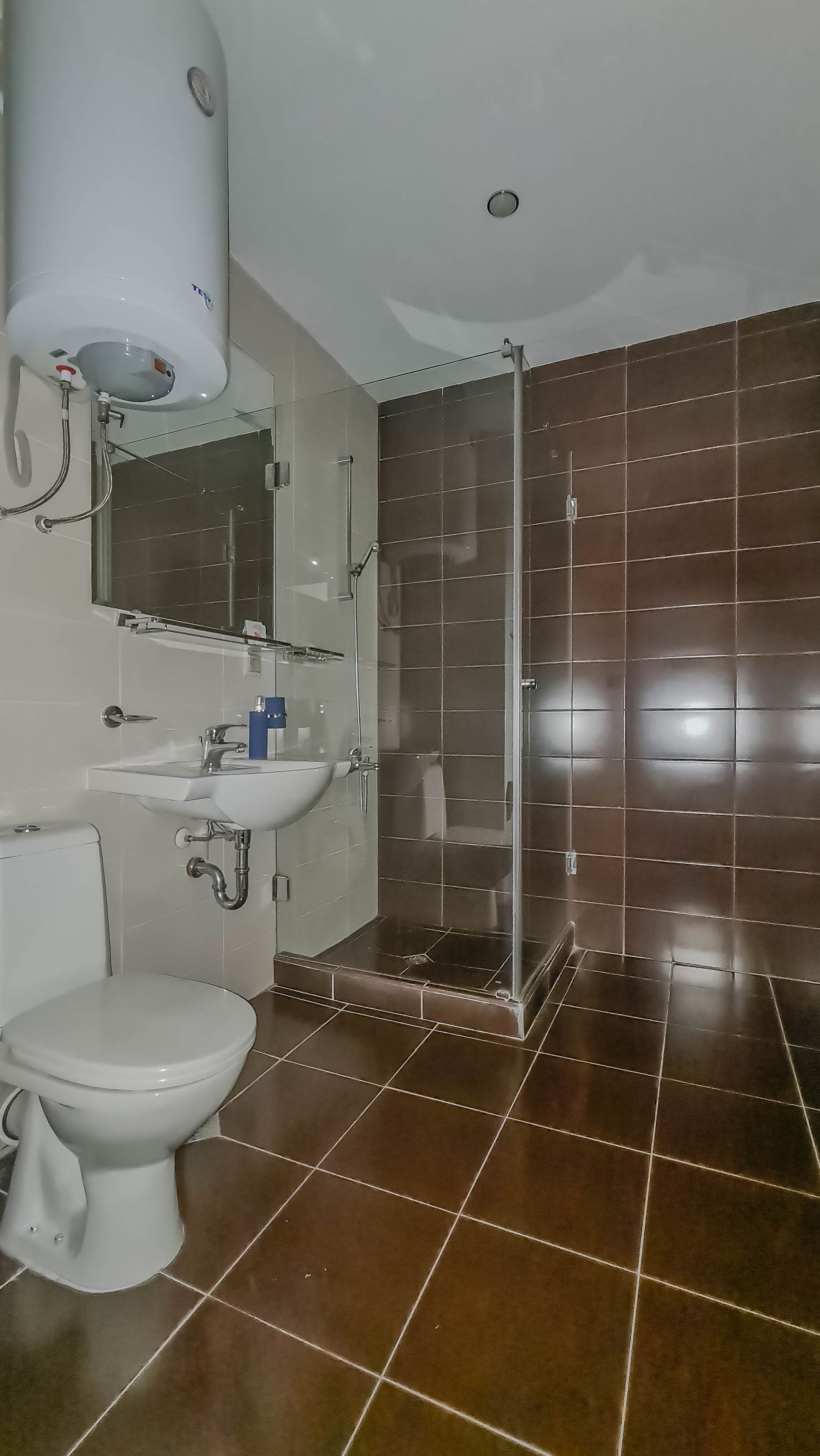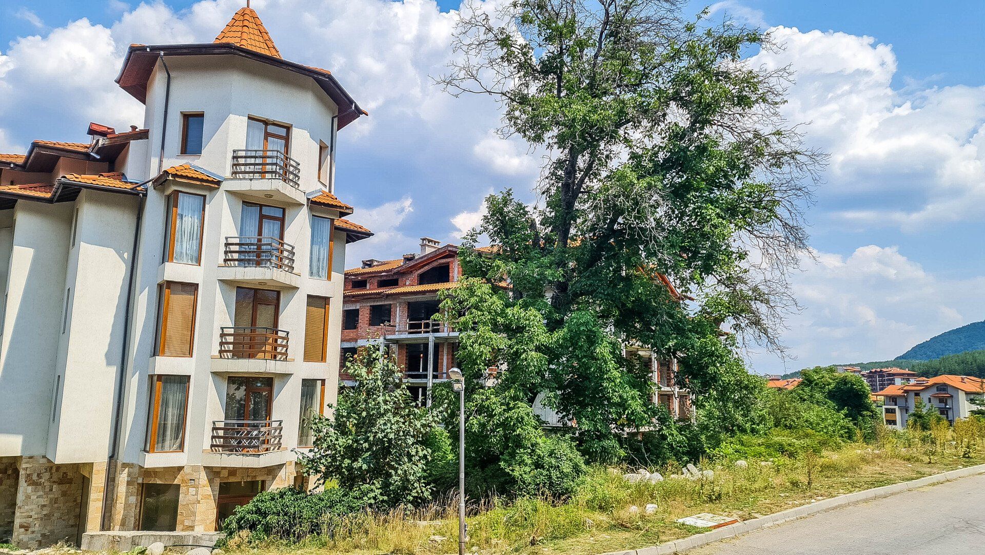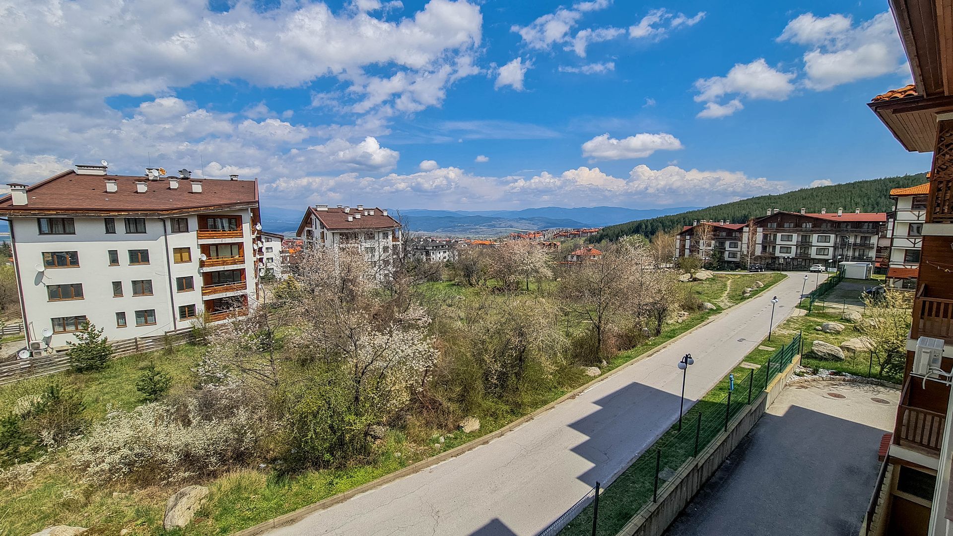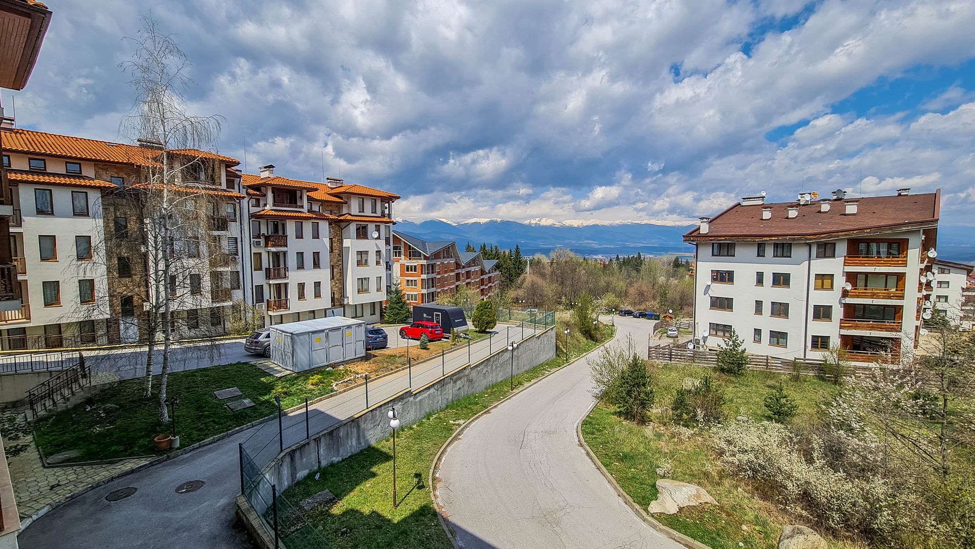 - Two bedrooms, living room, two toilets, bathroom, a balcony with a mountain view