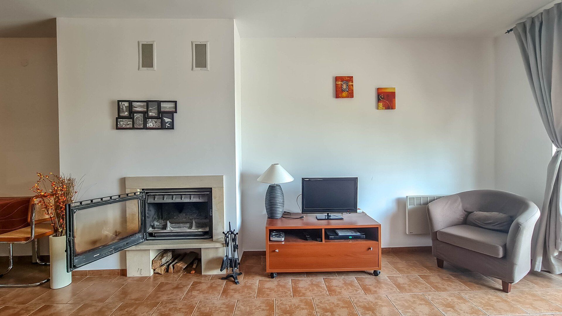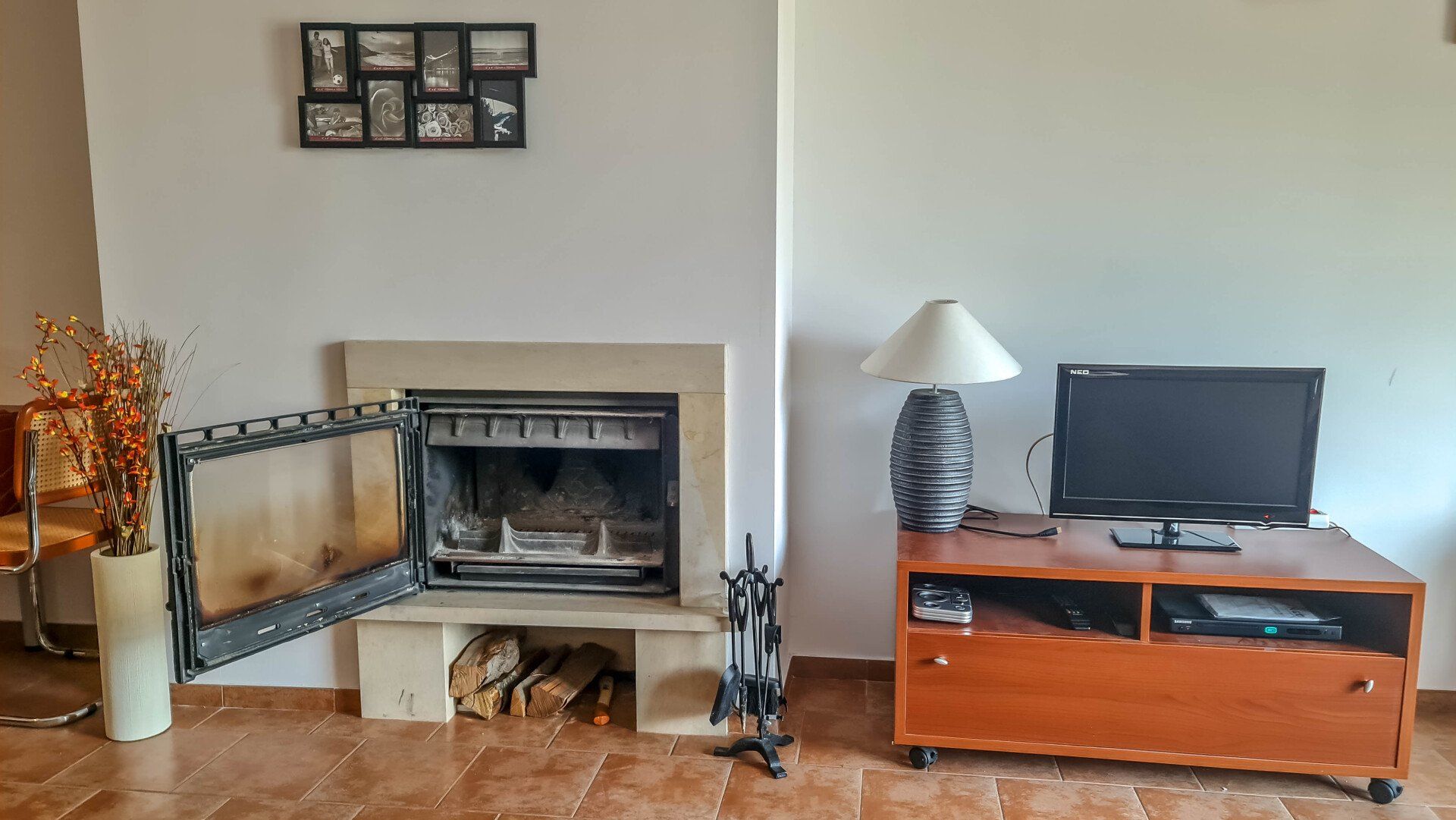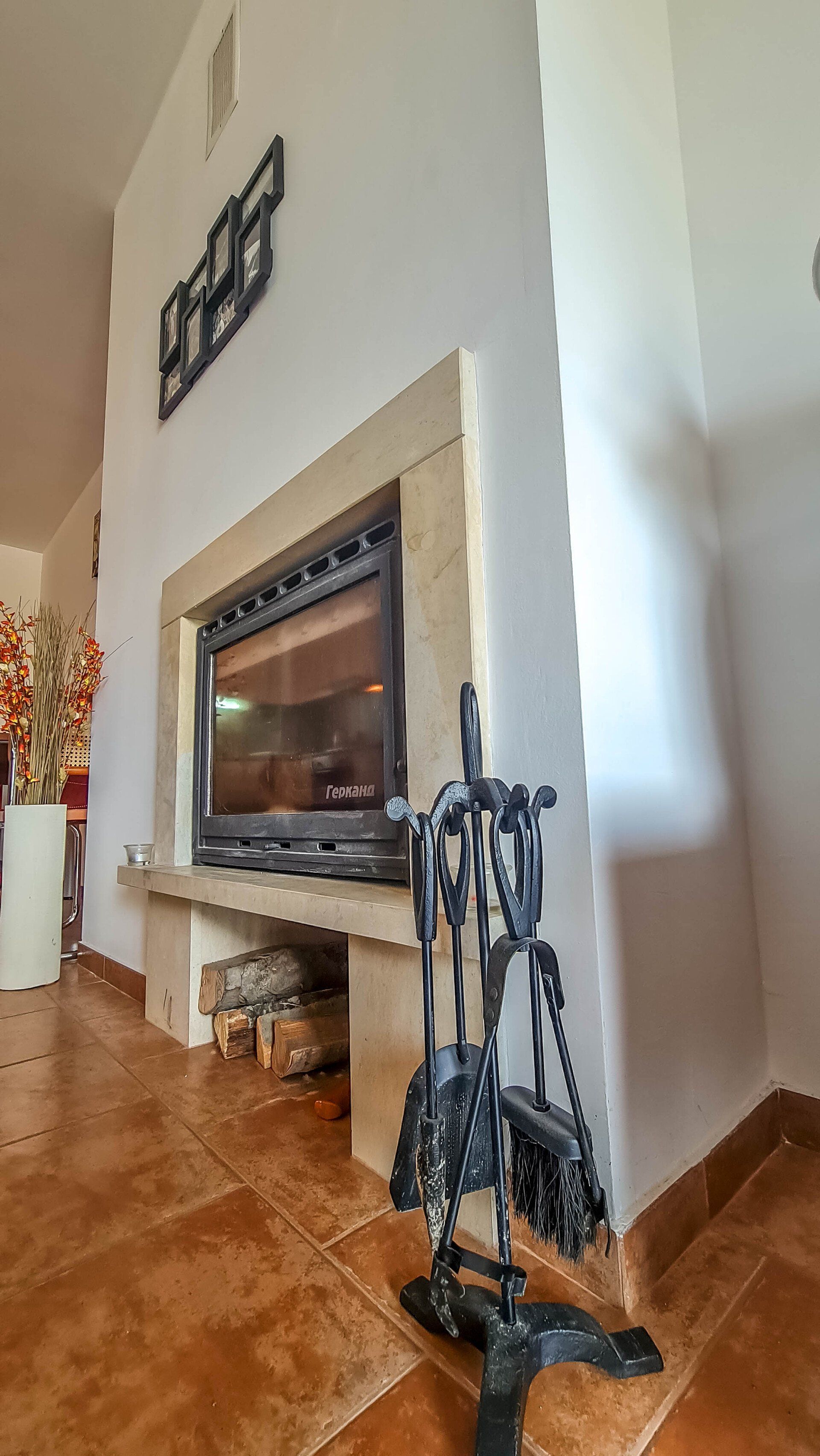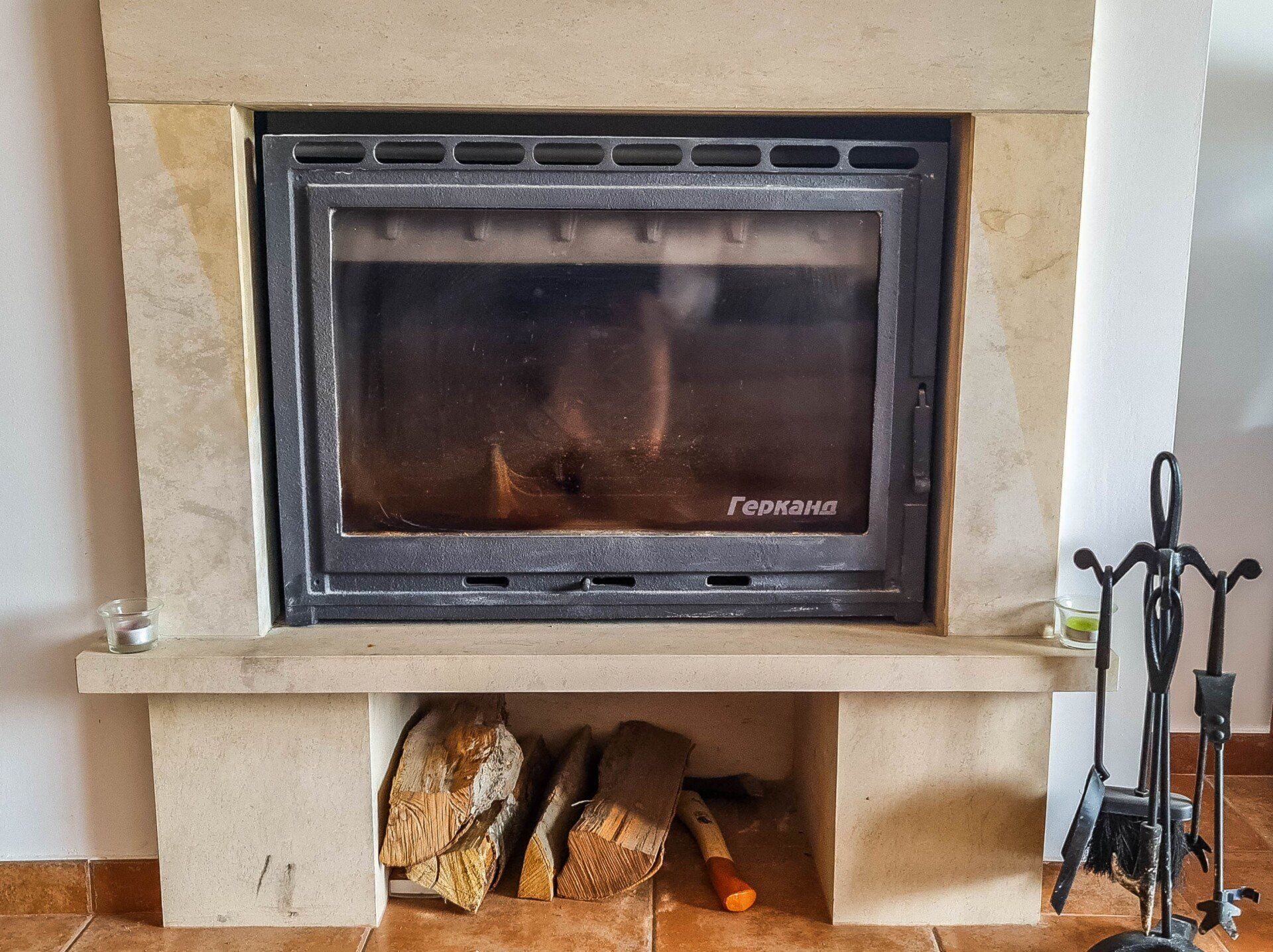 It has an oven, fireplace and a storage room for your convenience.
