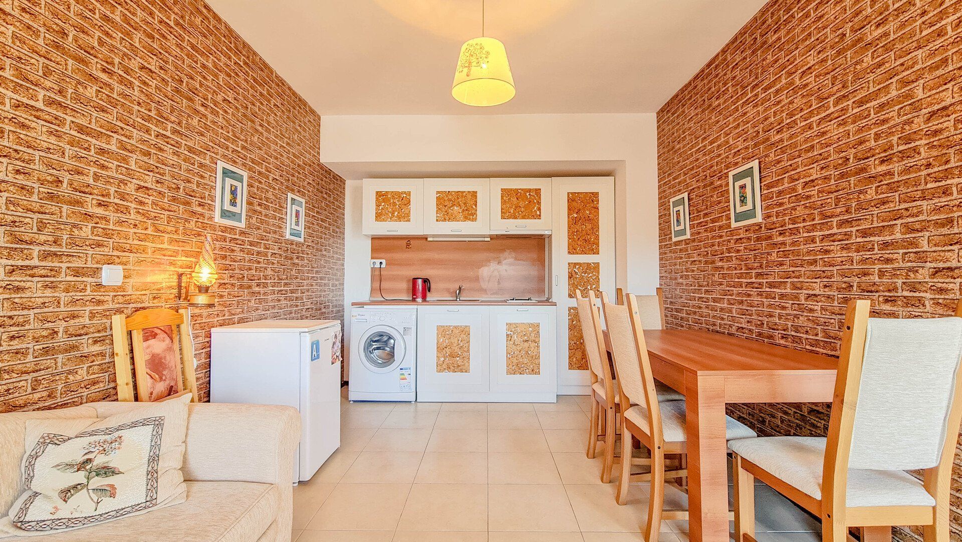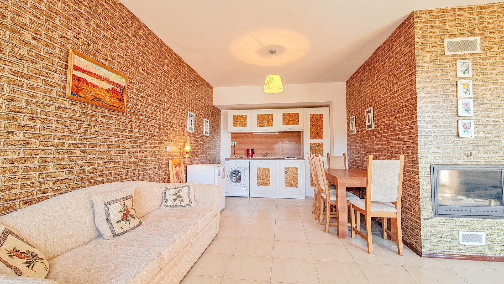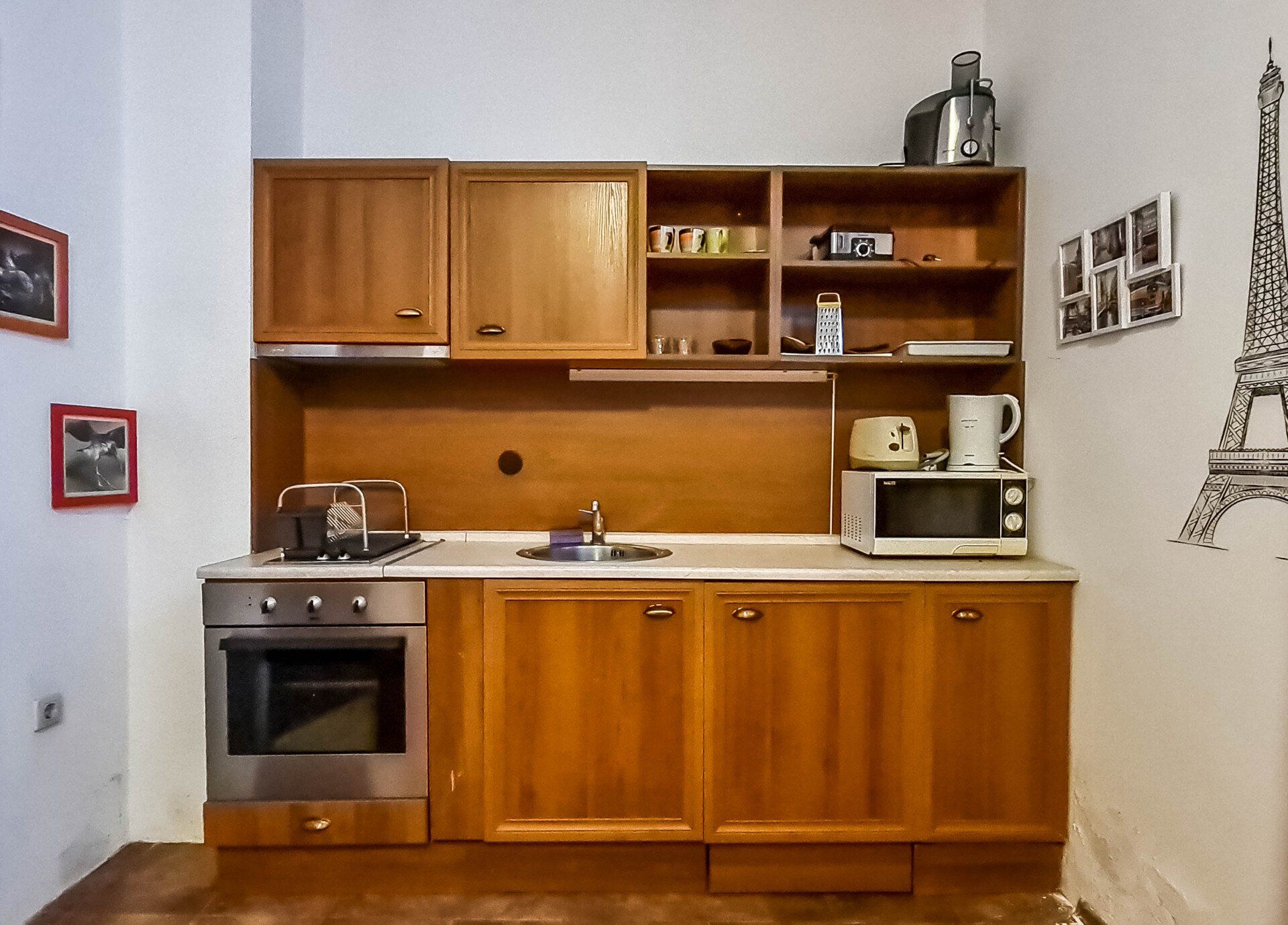 Включает в себя кухню и мебель. Массивные стены.