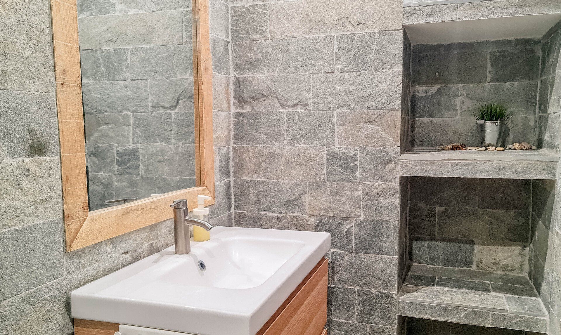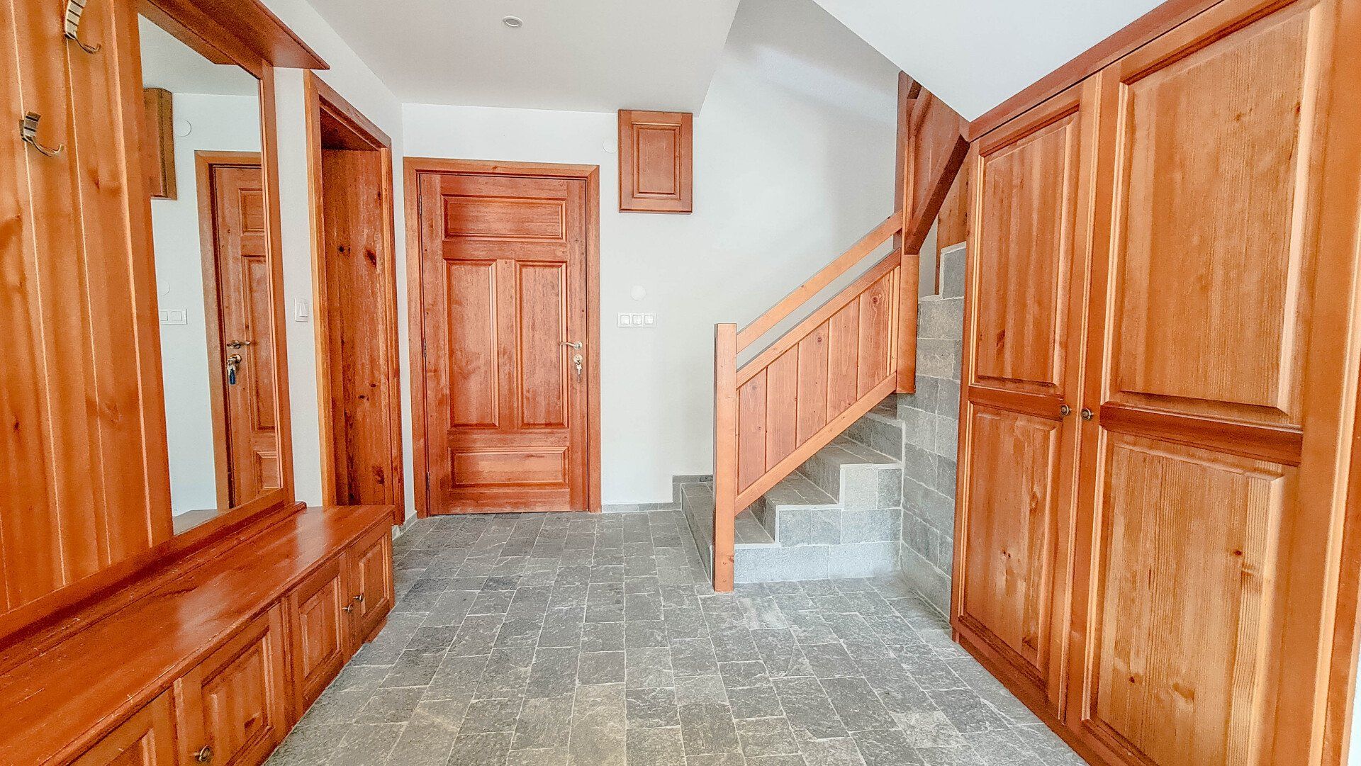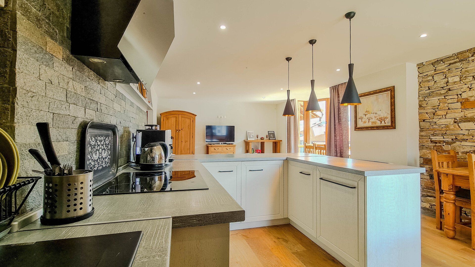 Включает в себя кухню и мебель. Массивные стены.