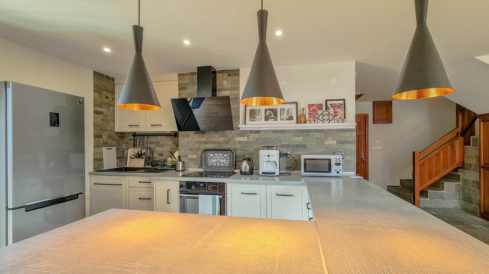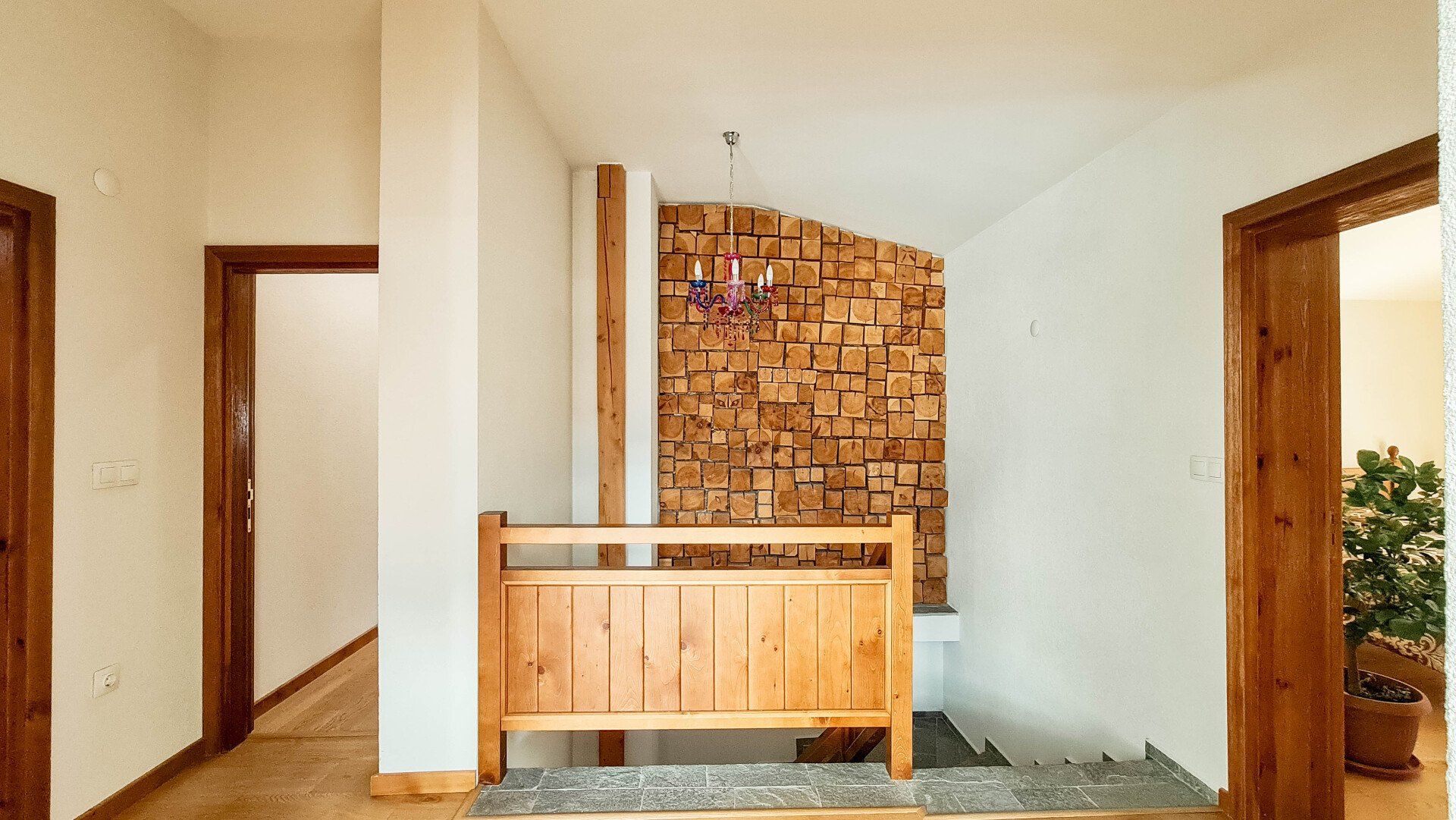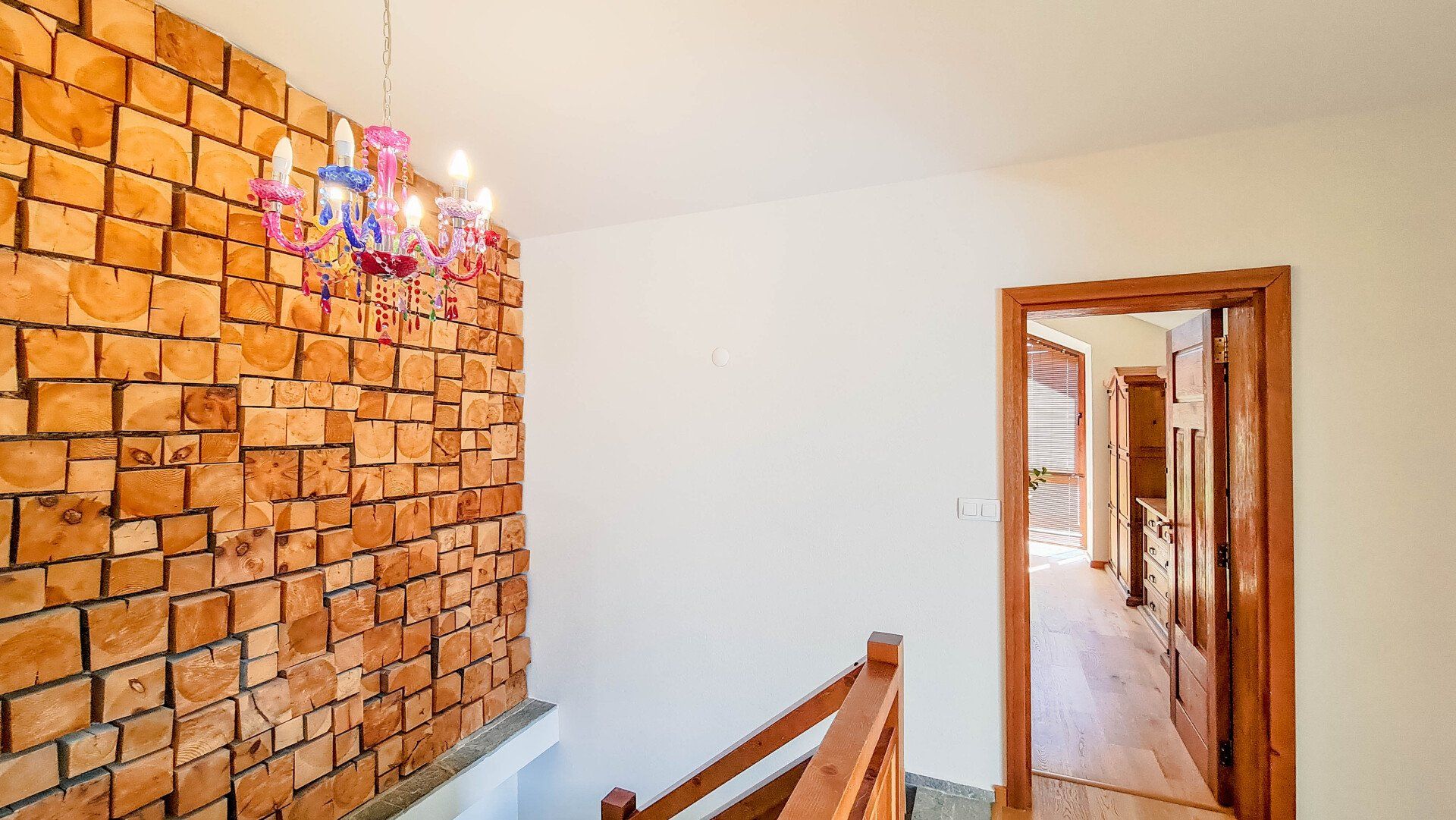 На втором этаже: 3 спальни, гостиная с камином, балкон 20 кв.м, санузел с сауной и подсобное помещение со стиральной машиной. Есть возможность сделать еще один санузел. Отопление: термонасосное. Электричество и вода по независимым счетчикам. Акт 16.
