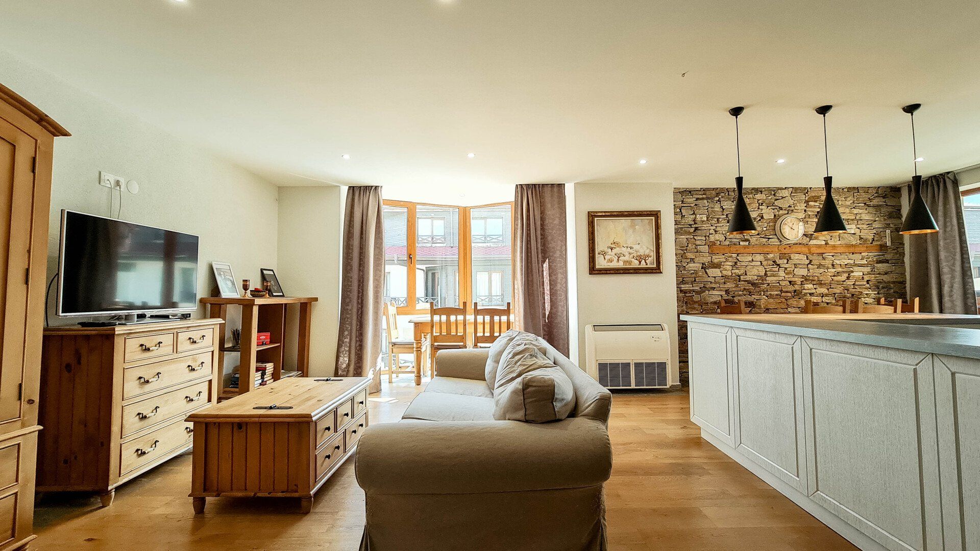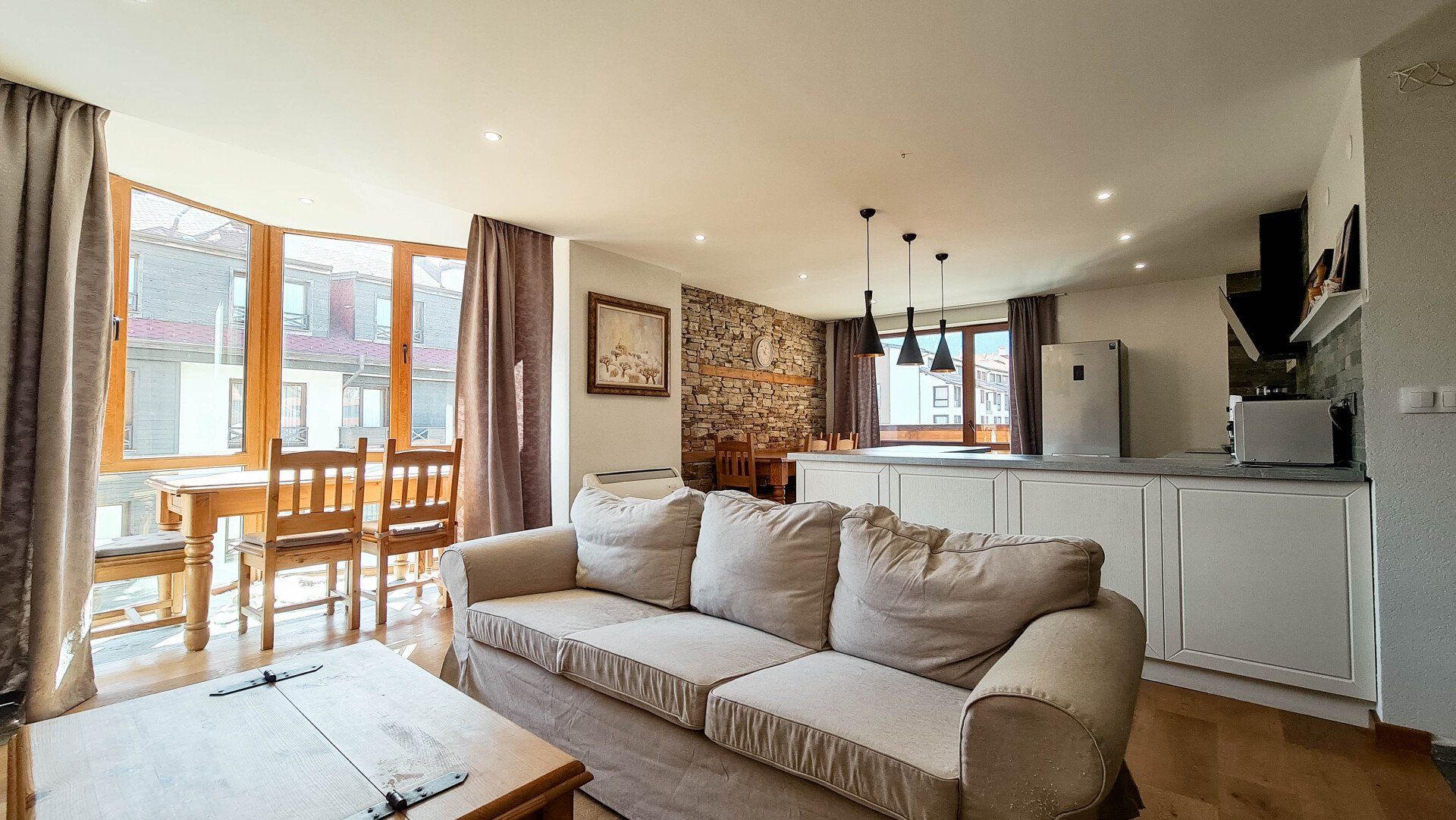 Район: Реальные 5 минут до подъемника (комплекс расположен рядом с Casa Karina). Такса обслуживания 5,5 евро за кв.м (уход за общими частями капитальный ремонт).